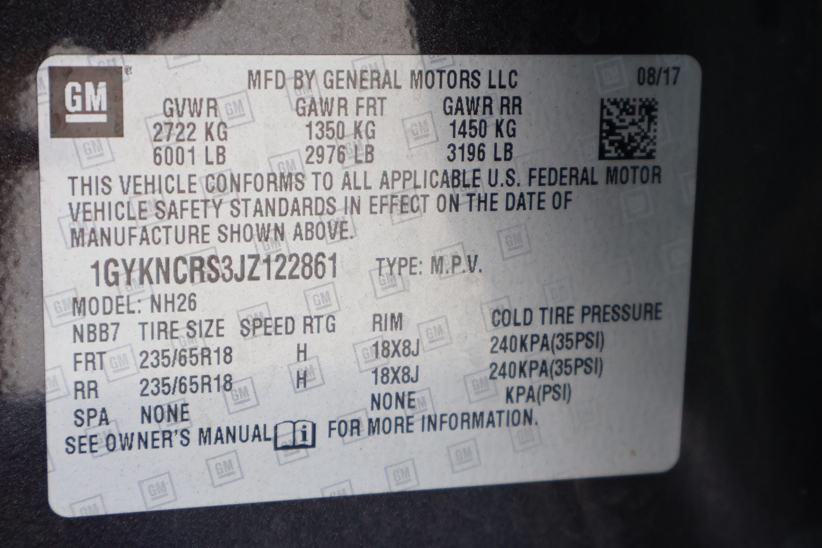 - Tires, P235/65R18 all-season, H-rated, blackwall (Upgradeable to (QNU) P235/55R20 all-season, H-rated, blackwall tires.)