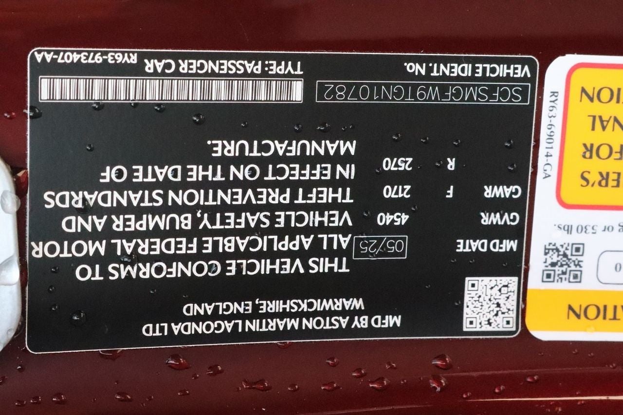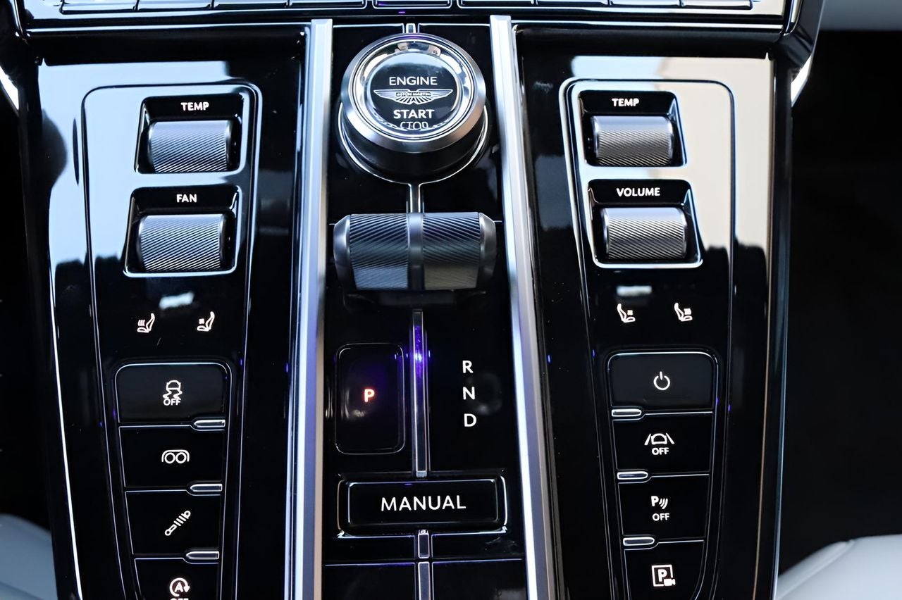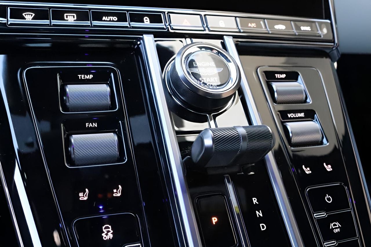 Step inside the cabin and be captivated by the attention to detail. The Alcantara trim, Micromesh Headlining, and heated front sports plus seats create an atmosphere of refined sophistication. The 11-speaker Aston Martin Audio System, with AM/FM, HD, and DAB radio, will immerse you in your favorite tunes. Convenience is at your fingertips with the power driver's seat, memory seat function, and steering wheel-mounted audio controls.